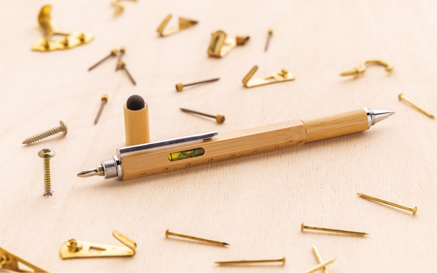 Daudzfunkcionāla 5 in 1 bambusa pildspalva