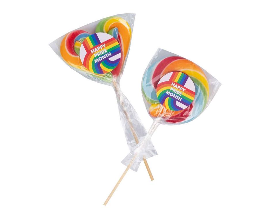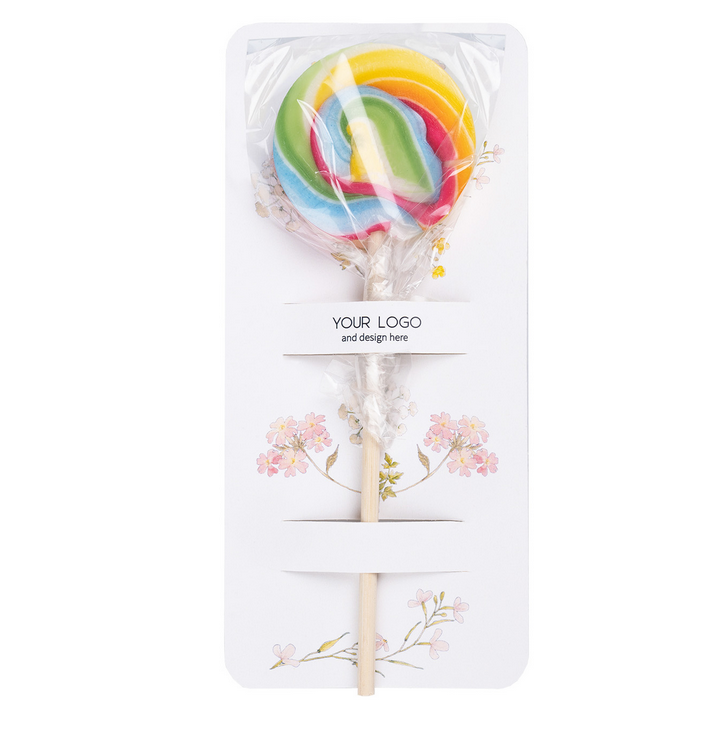 Karamele uz kociņa ar reklāmas kartiņu RAINBOW MINI CARD